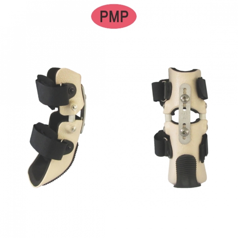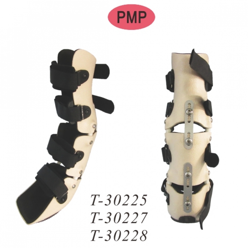 *The adjustable and removable support hinges on the back and side control the flexion and extension of tarsal joint. Used for the correct of tarsal hyperetension, varus or valgus deformities.